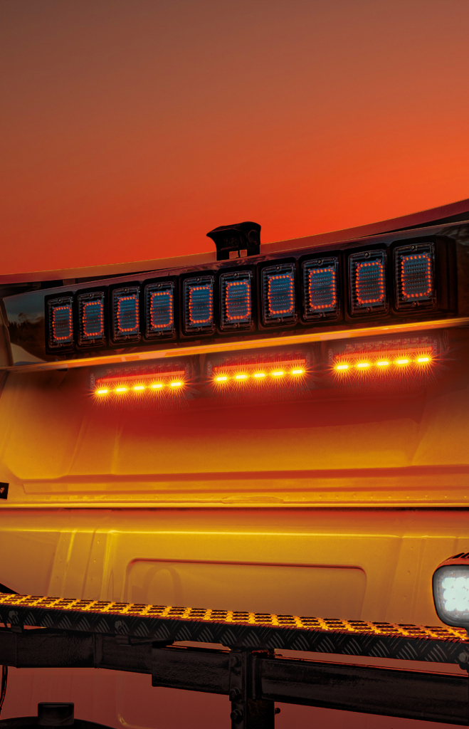 De fyra funktionerna – varningsljus och trippelpositionsljus i vitt, orange och rött ljus är fullt E-godkända och kan monteras i olika positioner på fordonet beroende på vilket ljus du vill använda.
